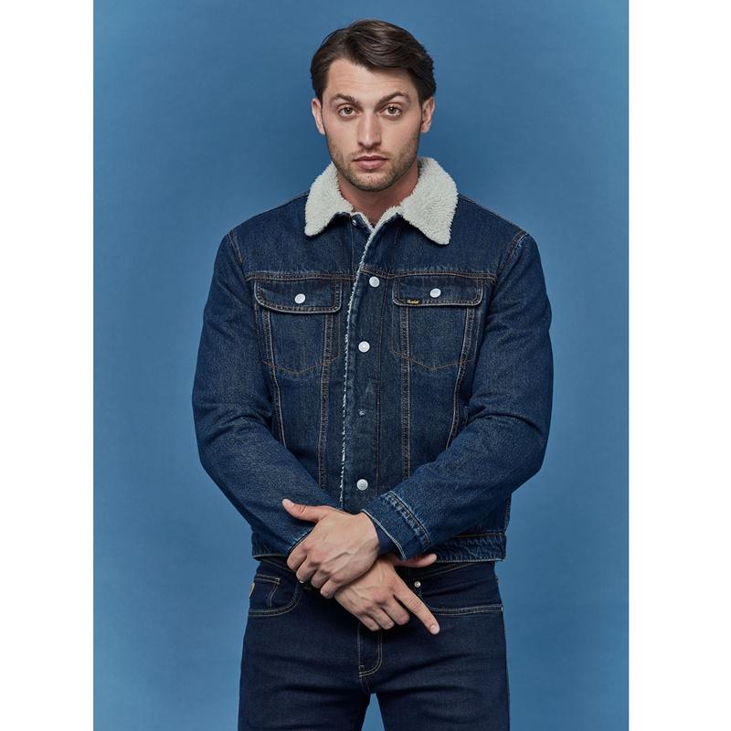 Cazadora vaquera de espíritu vintage con cuello y forro de borreguillo.