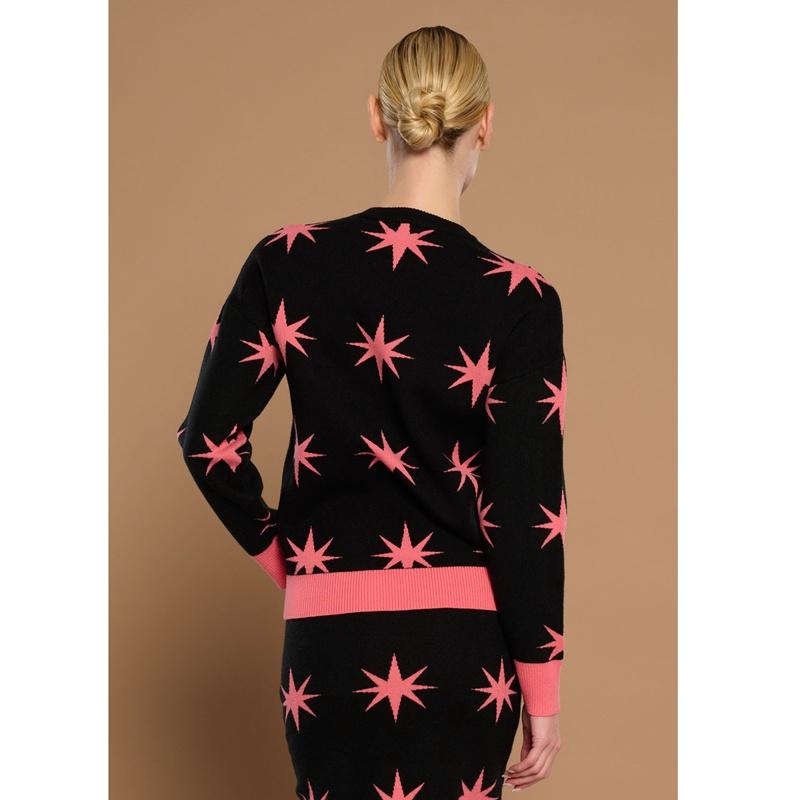 Jersey de punto con cuello redondo y manga larga. Cuello, cintura y mangas en rib. Tejido elástico. Estampado estrellas.