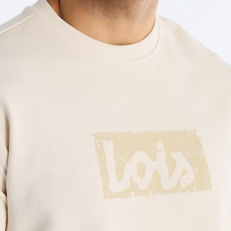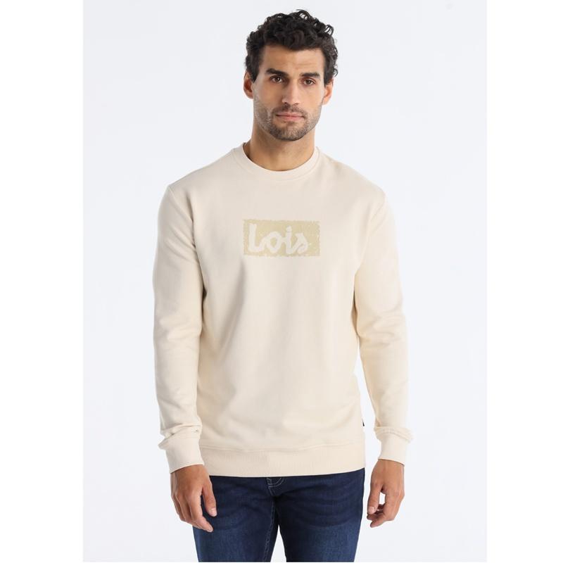 Sudadera con cuello caja color beige con logo de Lois al tono.