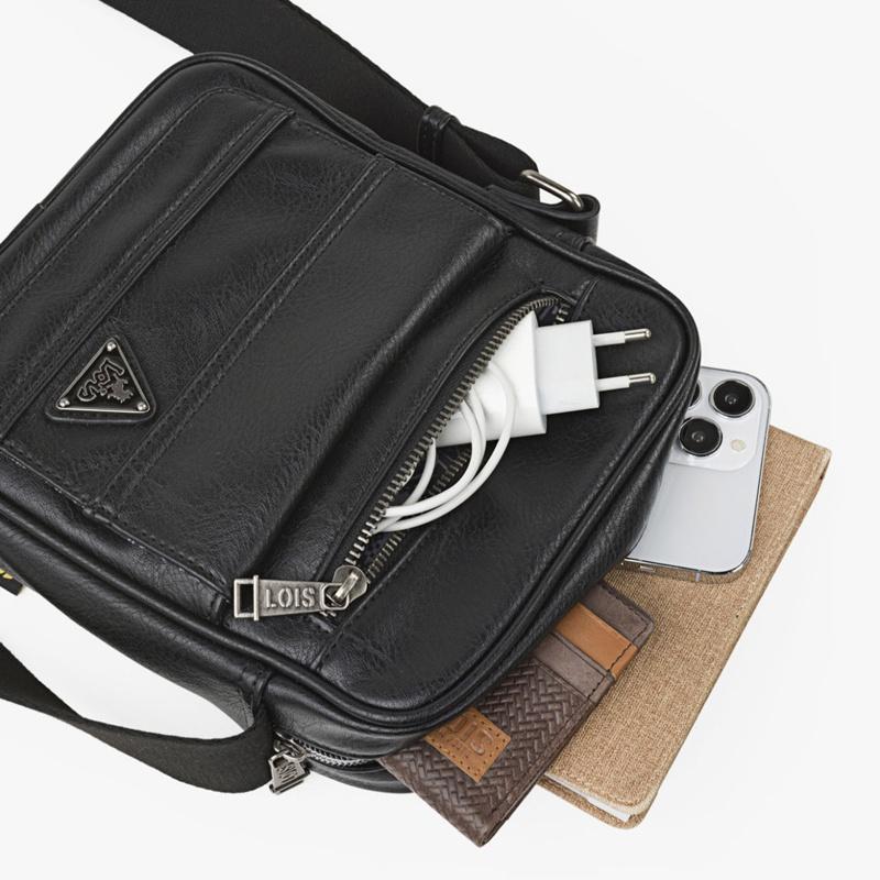 Bandolera pequeña color negro con asa regulable.