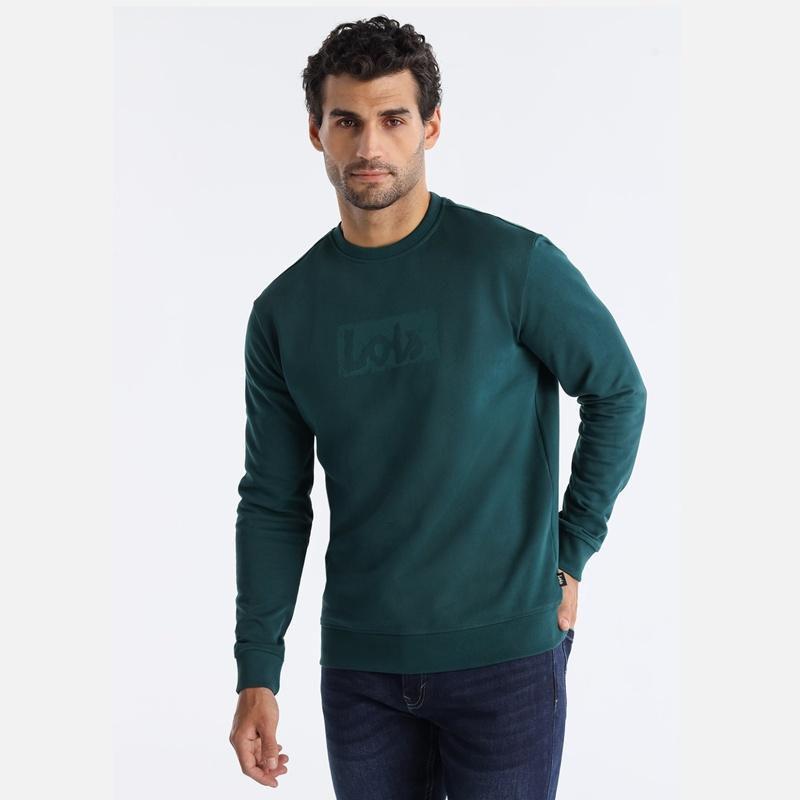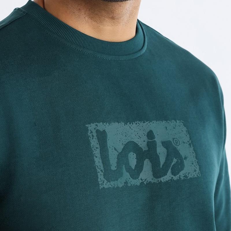 Sudadera con cuello caja color verde con logo de Lois al tono.