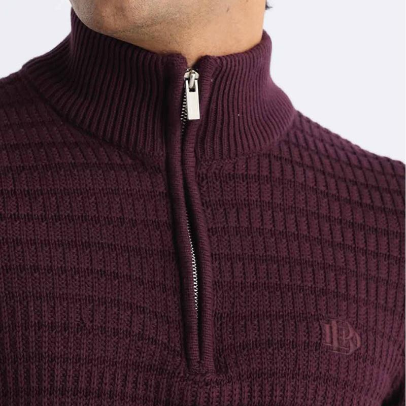 Jersey Bendorff con cuello Perkins y cremallera en color berengena.