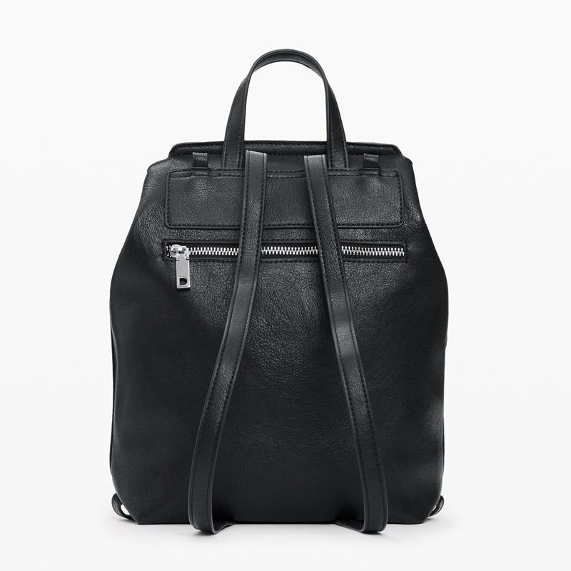 Mochila mediana con correa convertible en bolso, detalles trenzados, estampado troquelado y bordes rematados con cordón entrelazado.