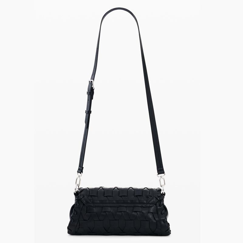Bolso pequeño con solapa y trenzado con efecto piel, correas intercambiables y charm con tarjetero extraíble.