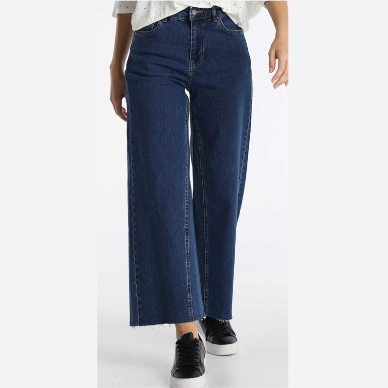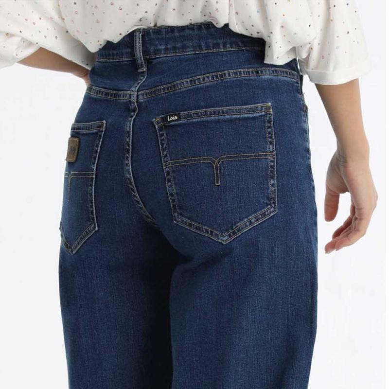 El modelo Valeria de Lois Jeans presenta un diseño recto y ancho con un corte cropped (tobillero).